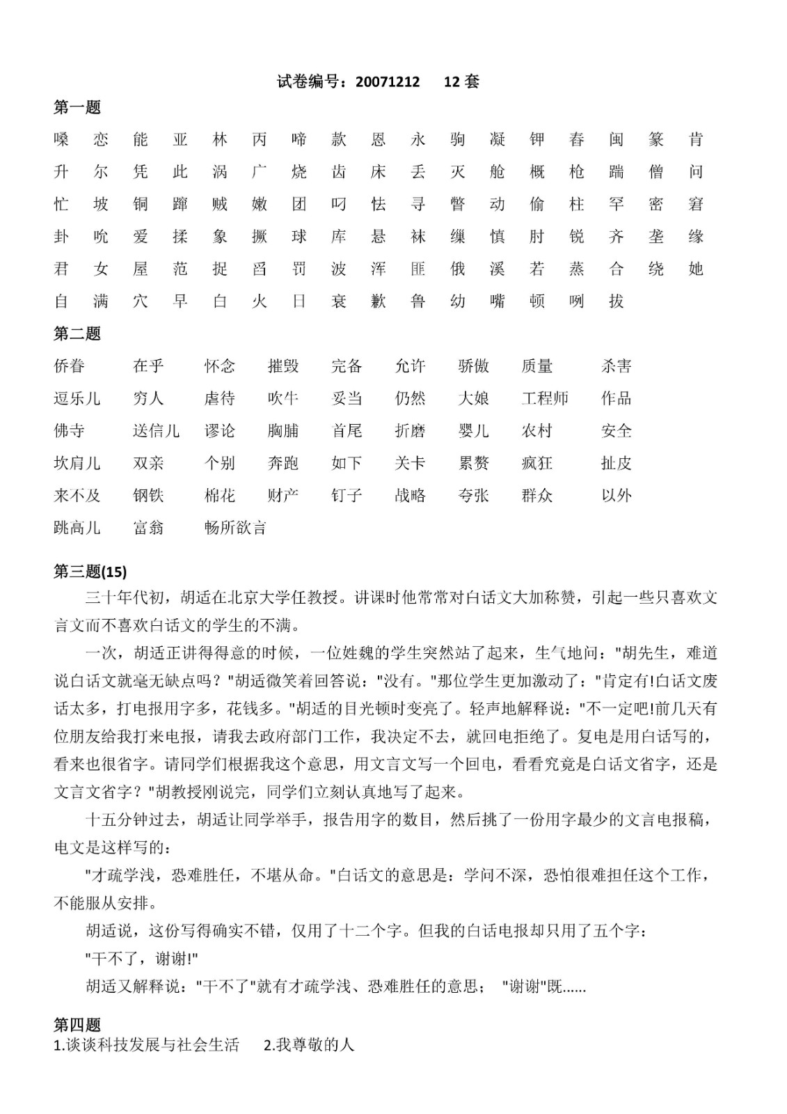 您现在的位置是:首页>文章 文章 普通话测试12-13套 发布人:黄蔚蕖 日期:2022-03-29 11:20浏览次数:3853点赞次数:0 普通话测试12-13套 普通话测试12-13套 很赞哦!0 上一篇 普通话测试11套 第十一套 下一篇 普通话测试14套 普通话测试14套 相关文章 普通话测试1-10套 普通话测试11套 普通话测试12-13套 普通话测试14套 普通话测试15套 普通话测试16套 普通话测试17-20套 普通话测试21-36套 普通话测试攻略 国家普通话水平考试培训教程