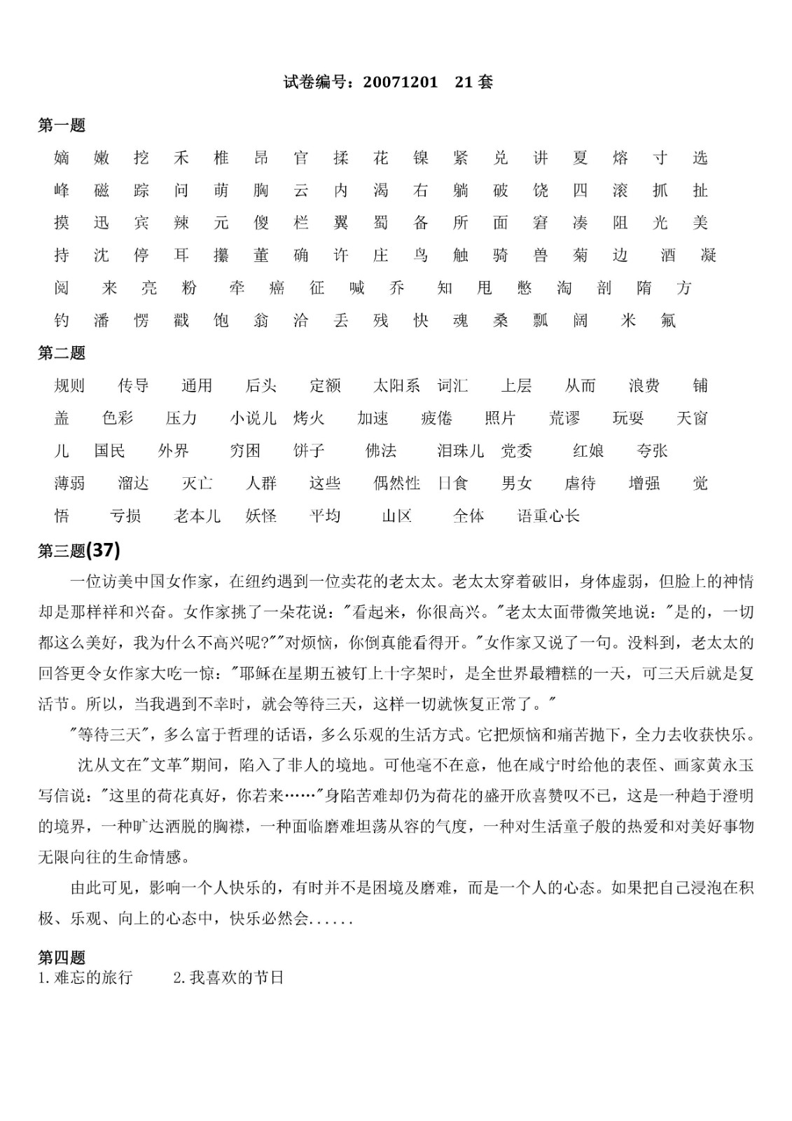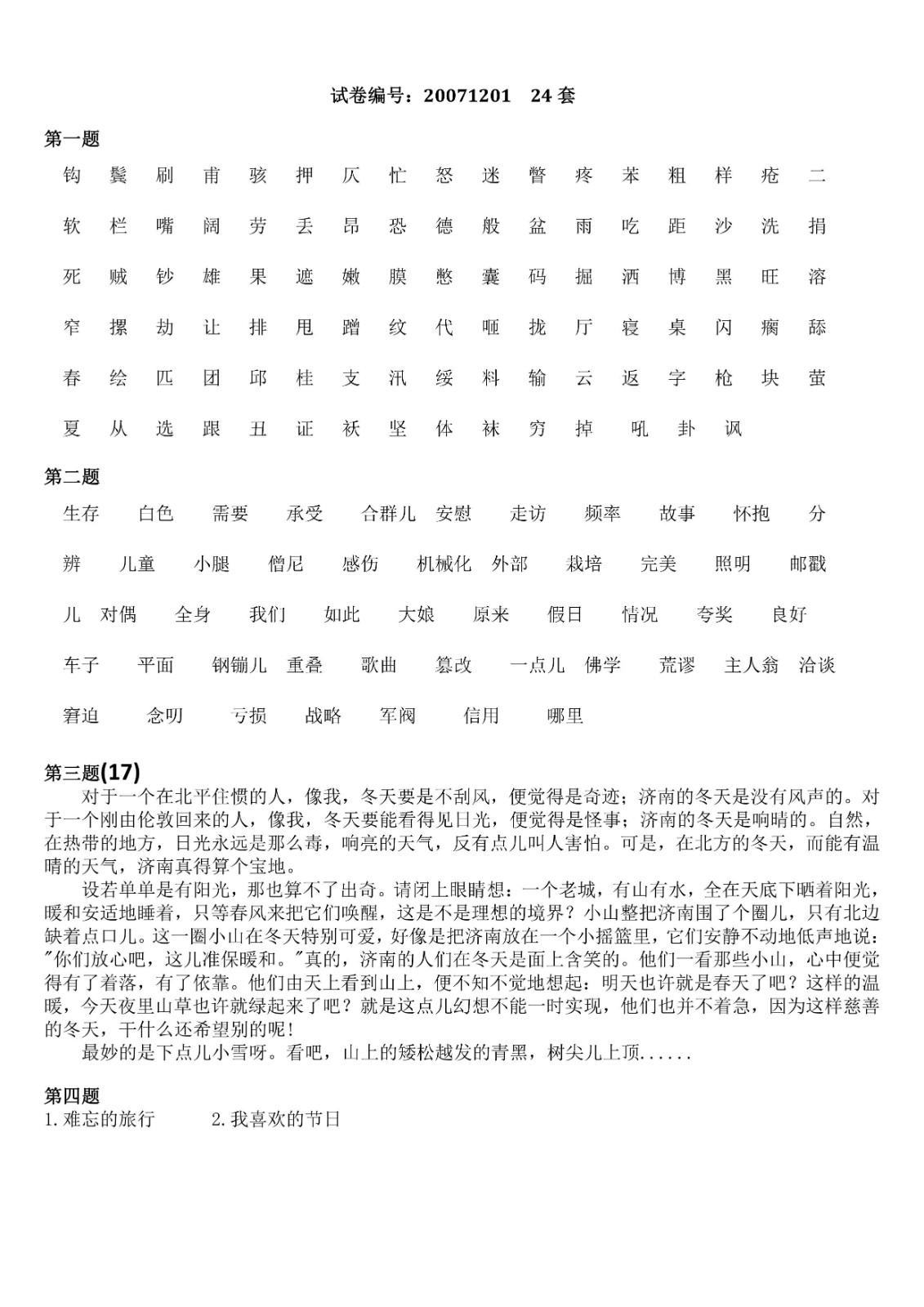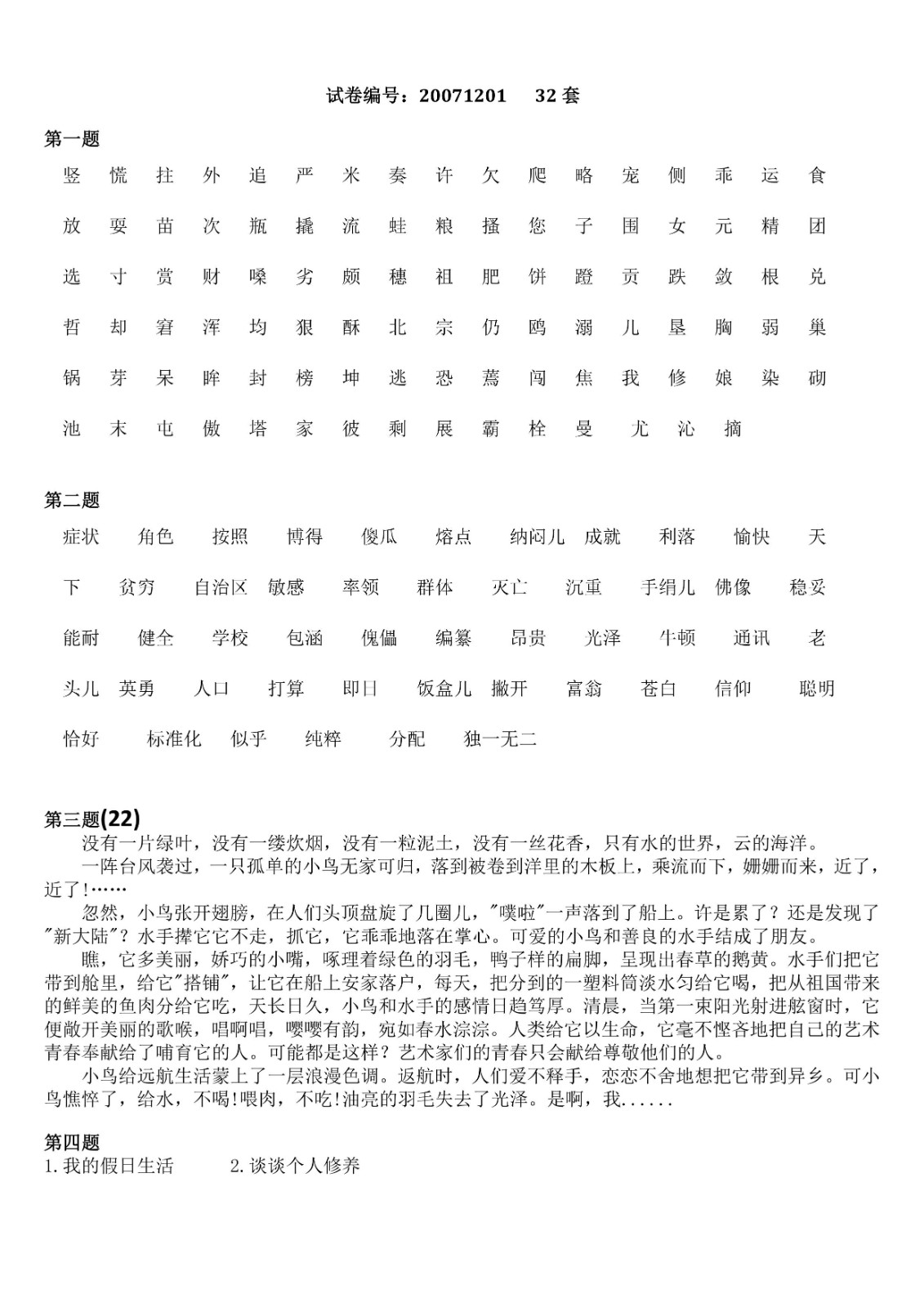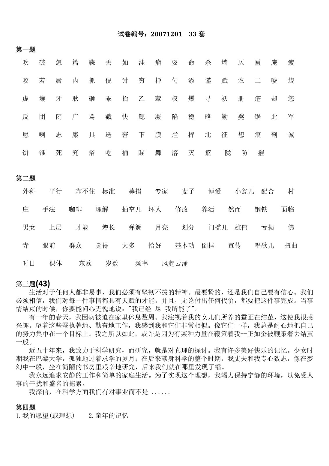 您现在的位置是:首页>文章 文章 普通话测试21-36套 发布人:黄蔚蕖 日期:2022-04-01 07:52浏览次数:4153点赞次数:2 普通话测试21-36套 普通话测试21-36套 很赞哦!2 上一篇 普通话测试17-20套 普通话测试17-20套 下一篇 普通话测试攻略 请自行下载 相关文章 普通话测试1-10套 普通话测试11套 普通话测试12-13套 普通话测试14套 普通话测试15套 普通话测试16套 普通话测试17-20套 普通话测试21-36套 普通话测试攻略 国家普通话水平考试培训教程