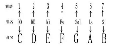 4、简谱唱法与五线谱的音名唱法对照表如图。