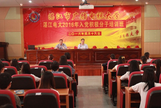 4月16日至17日,我校2016年入党积极分子培训班在校本部11楼学术报告厅开班,集中培训为期2天。来自校本部、主校区和赤坎校区105名师生参加了培训。学校党委书记、校长李连红,副书记饶腊年,副校长尤祖国、王康生等校领导为学员上党课,进行了党的知识的教育,让学员了解党的性质、宗旨、纲领、指导思想、基本路线、方针政策和作风纪律,认识入党的程序和努力的方向,端正入党动机。