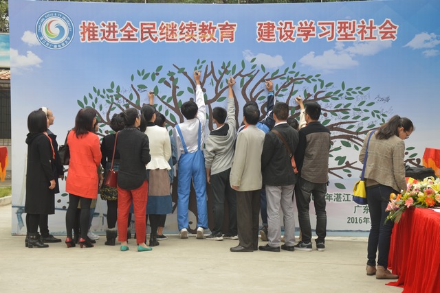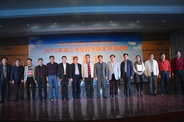 12日12日,湛江市2016年"全民终身学习活动周"开幕式在湛江市广播电视大学主校区举行。湛江市人民政府副秘书长杨文光、湛江市教育局局长李更盛、副局长冯燕锋、各县(市、区)教育局领导、湛江电大校领导及各县(市)电大校领导,各中职学校校领导和教师、学生代表、社区居民代表共300多人出席了开幕式。