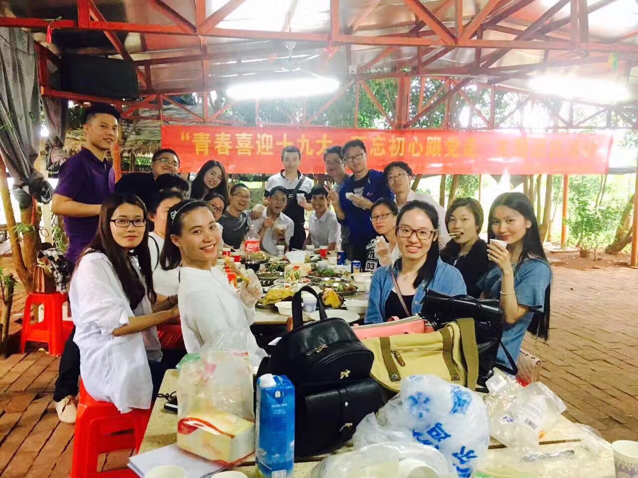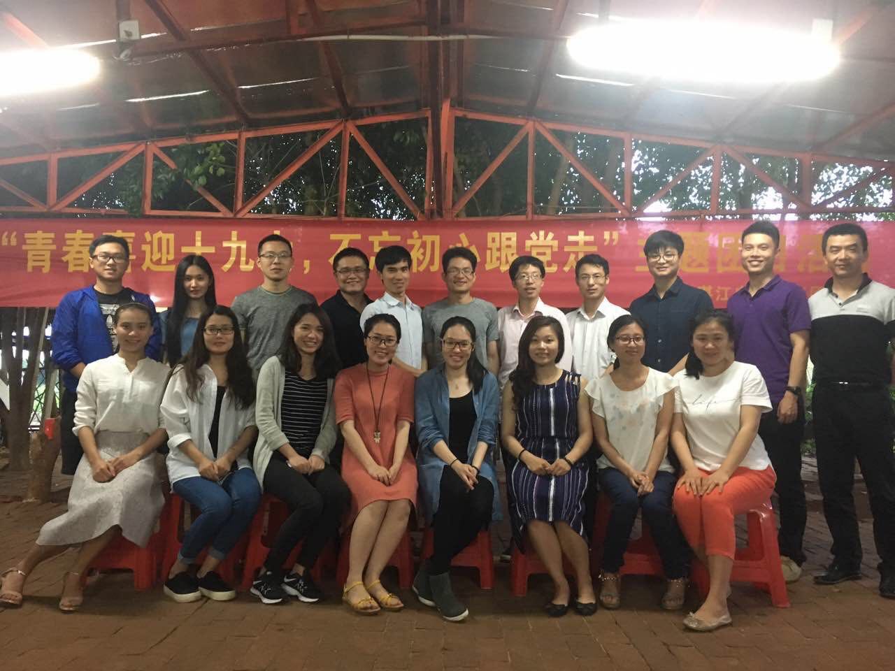 2017年4月28日,湛江电大教工团支部开展"青春喜迎十九大,不忘初心跟党走"户外拓展主题团日活动,作为"五·四"青年节系列的活动,同时丰富教工团支部青年职工的业余文化生活。19名支部成员踏着刚刚被雨水洗礼过的公路,来到了湖光岩。为落实一学一做教育实践活动,邀请了学校部分老党员参与,分享体会。小伙伴们在拓展中分四组穿插了厨艺比赛环节,赛事以小组为单位做出任意菜品,各小组分工明确,人人参与,各显身手,老党员作为评委分别评审出一二三等奖,并作为本次拓展活动的晚餐,为拓展活动增添了活力。活动在清凉的山风中,在落日的余晖中,大家的欢声笑语中落下了帷幕。