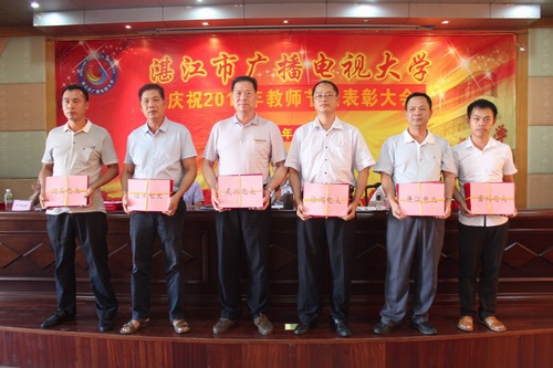 李连红校长在讲话中,首先代表学校向受表彰的优秀教师表示热烈祝贺,向辛勤工作的全市电大系统教育工作者表示节日的祝贺和亲切的问候。李校长从开放教育、招生规模教学质量、服务水平科研项目、校本研修培训工作、系统建设及其他各项工作等方面回首了一年来的工作情况。他强调,湛江电大教育事业取得的成绩,凝结着全市电大系统教师和教育工作者的智慧和力量,是全体教职工辛勤耕耘、默默奉献的结果。他希望全体教职工坚定信念,磨练意志爱岗敬业,知行合一求实创新,勤于反思,为电大教育事业的发展做出更大的贡献。