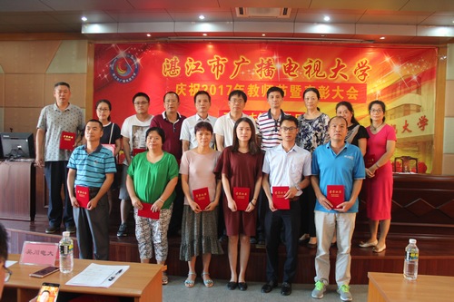 9月8日下午,我校隆重举行全市电大系统教师节庆祝暨表彰大会,表彰先进,共庆节日。学校党委书记、校长李连红、党委副书记饶腊年、副校长尤祖国、李聪睿出席会议,市电大全体教职工及吴川、廉江、遂溪、雷州、徐闻、坡头等各县(市)电大、分校领导、优秀教师代表等参加了大会。会议由饶腊年副书记主持,尤祖国副校长宣读全市电大系统优秀校长、优秀教师、优秀班主任、先进教育工作者和2016~2017年度教学科研成果奖励表彰决定,林志明等110名获奖教职工受到表彰。