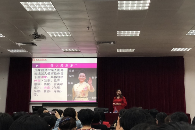 3月7日,湛江中医学校高级讲师李道婷和湛江中医学校美容美体教研室教师郭宏聪分别讲授了《中医四季养生》和《形象设计》课程,两位老师分别用简单易懂的语言和贴近生活的实例向学员讲解了中医养生和形象设计方面的知识,得到了现场姐妹的普遍认可和回应。