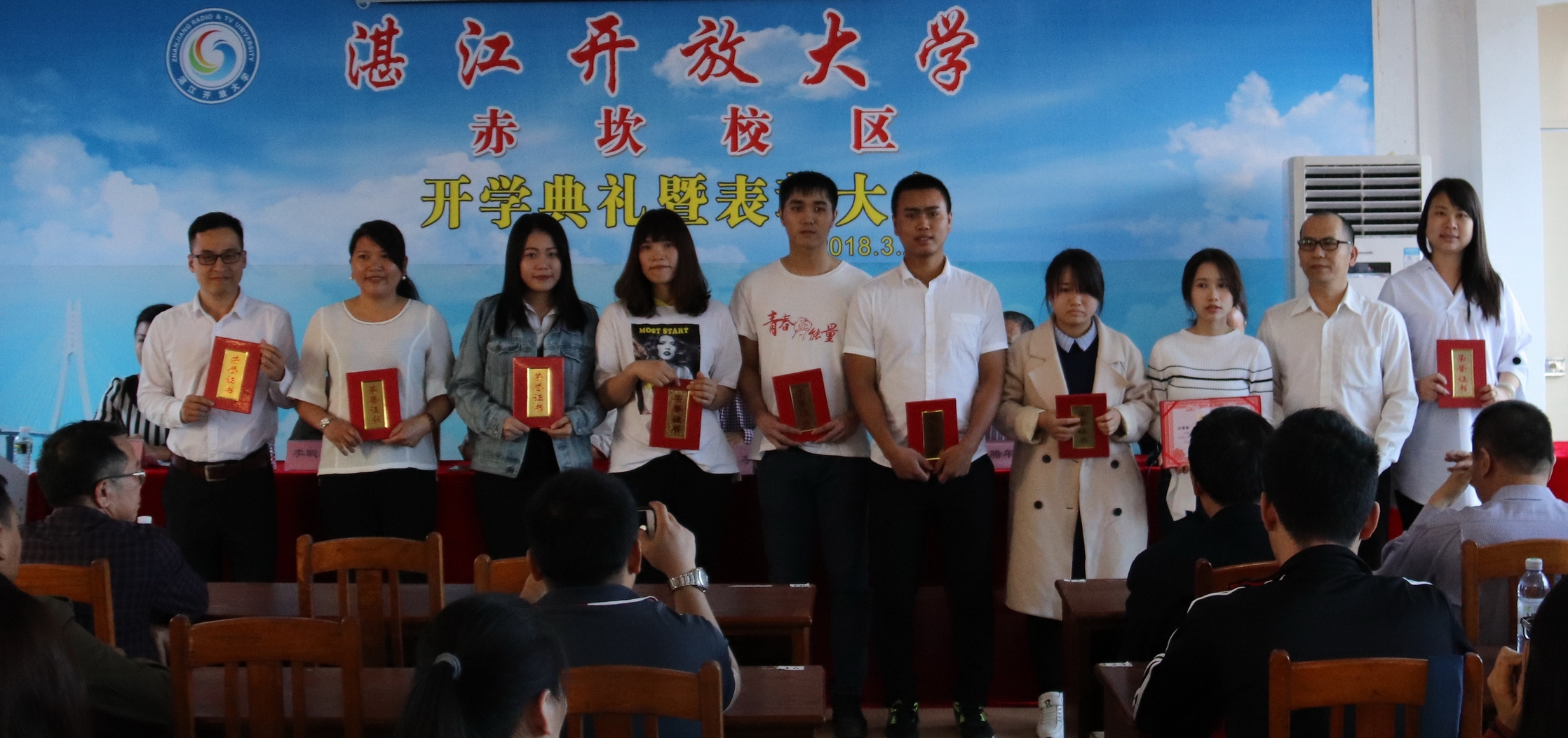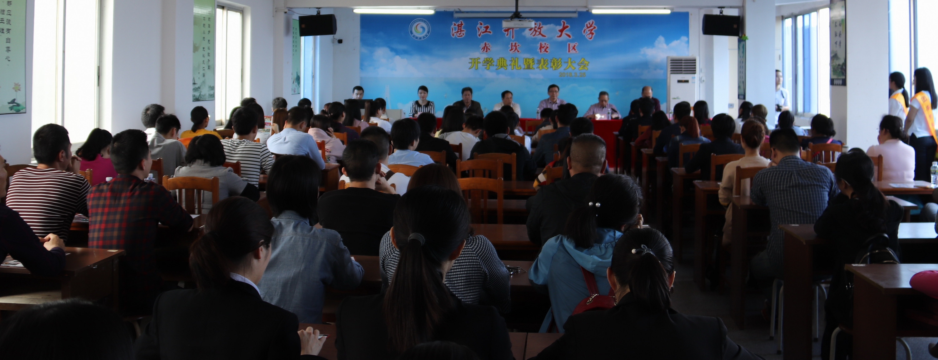 3月25日上午,湛江开放大学在校本部11楼学术报告厅及各个分会场和赤坎校区隆重举行了2018年春季开学典礼暨表彰大会,991名新生跨入大学校门。湛江开放大学党委书记、校长李连红等校领导及学校各科室负责人出席典礼。
