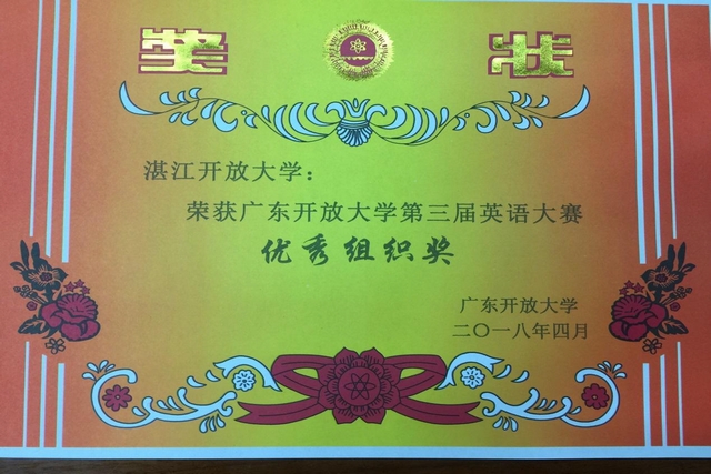 广东开放大学于2018年3月下旬以及4月初在广州组织了广东开放大学第三届英语大赛复赛和决赛工作。我校组织相关教师和学生积极参与,并在大赛中喜获优秀组织奖。