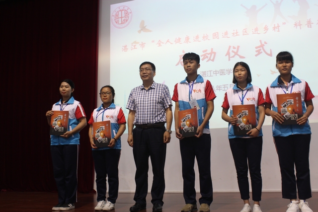 5月4日晚,湛江市"全人健康进校园进社区进乡村"科普行动启动仪式在湛江中医学校多功能报告厅启动。湛江市科学技术协会党组书记、主席肖斌,湛江开放大学校长李连红,湛江中医学校党委书记、校长张安、湛江消委会秘书长武新建、湛江市健康教育所所长廖文翔、开发区仁瑞医院董事长林尚春等出席活动,湛江中医学校师生共450余人齐聚于此,在庆祝五四青年节之际,聆听口腔健康讲座,传承青春的力量。