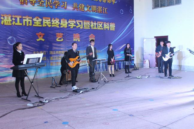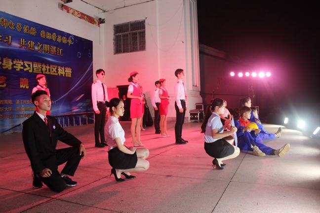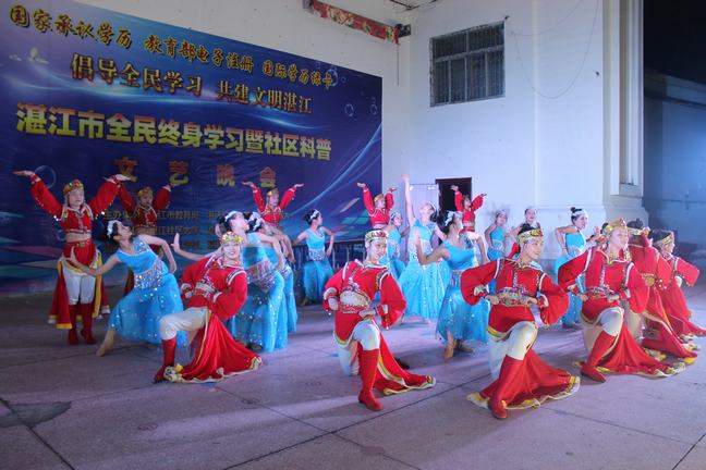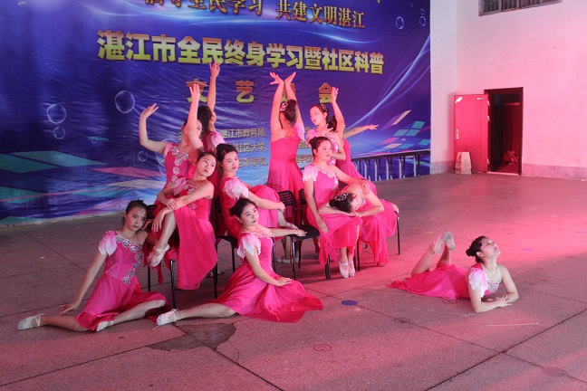 12月15日晚,湛江市赤坎区体育场开心广场彩灯闪耀,笑语飞扬。由湛江市教育局、湛江开放大学主办,湛江社区大学、湛江市财政职业技术学校承办,湛江艺术学校、湛江中医学校协办的"倡导全民学习,共建文明湛江"歌舞晚会在此隆重举行。学校师生与市民数百人一起观看了演出,共同分享收获的喜悦。