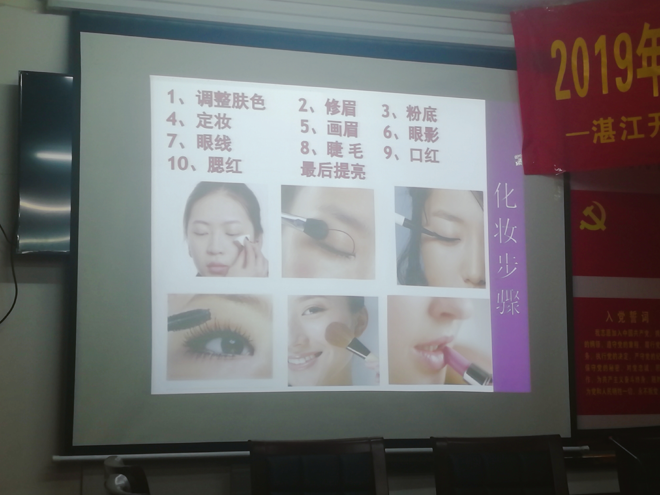为突出课堂效果,何颖老师精心准备了图文并茂的多媒体课件,以女士护肤保养、化妆技巧、服装色彩搭配、职场礼仪等为主要内容,帮助在职员工提升个人品味和素养为宗旨。何老师在讲授的过程中从女士形象的重要性开始,详细讲解作为现代的女性应如何进行日常皮肤护理,如何化职业淡妆,如何根据自己的身形选择合适的服装,既有理论辅导,又有事例分享。现场气氛欢快,讲课内容丰富、声情并茂、生动形象,精彩的讲解不时搏得大家阵阵掌声。
