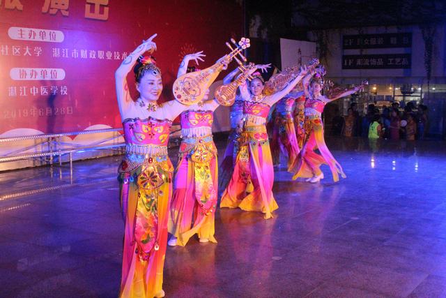 6月28日晚,湛江社区大学2019年春季学习成果汇演在霞山步行街开心广场举行,莅临本次典礼现场的领导嘉宾有:中共湛江市委老干部局、湛江市教育局、湛江中医学校的各位领导及我校领导班子成员。湛江开放大学教职工、湛江社区大学教师、学员与居民等四百余人参与了此次典礼。