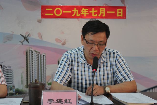 李连红校长在大会上讲话。他代表学校党委向全校共产党员致以节日的问候。向受到表彰的先进集体、个人和新入党的36名同志表示热烈的祝贺。李校长回顾了中国共产党成立98年来的光辉历程,对一年来我校党建等主要工作作了全面回顾。他说,当前,学校处于加快发展的新起点上,要实现转型发展的既定目标,必须加强党的领导,必须进一步发挥广大党员的先锋模范作用。要以开放办学为定位,充分发挥党员的先锋模范作用以服务立校为契机,全面推进学校服务型党组织建设以创新强校为动力,不断开创学校转型发展新局面。全体党员要深入学习贯彻落实习近平新时代中国特色社会主义思想和党的十九大精神、总书记视察广东重要讲话精神,以更加饱满的精神状态,更加扎实的工作作风,更加严谨的工作态度,创新思路求突破,团结务实树形象,以实实在在的行动和真真切切的效果,为党旗添彩,为事业增色,为办好让人民满意的开放教育再聚力量、再鼓干劲、再立新功!