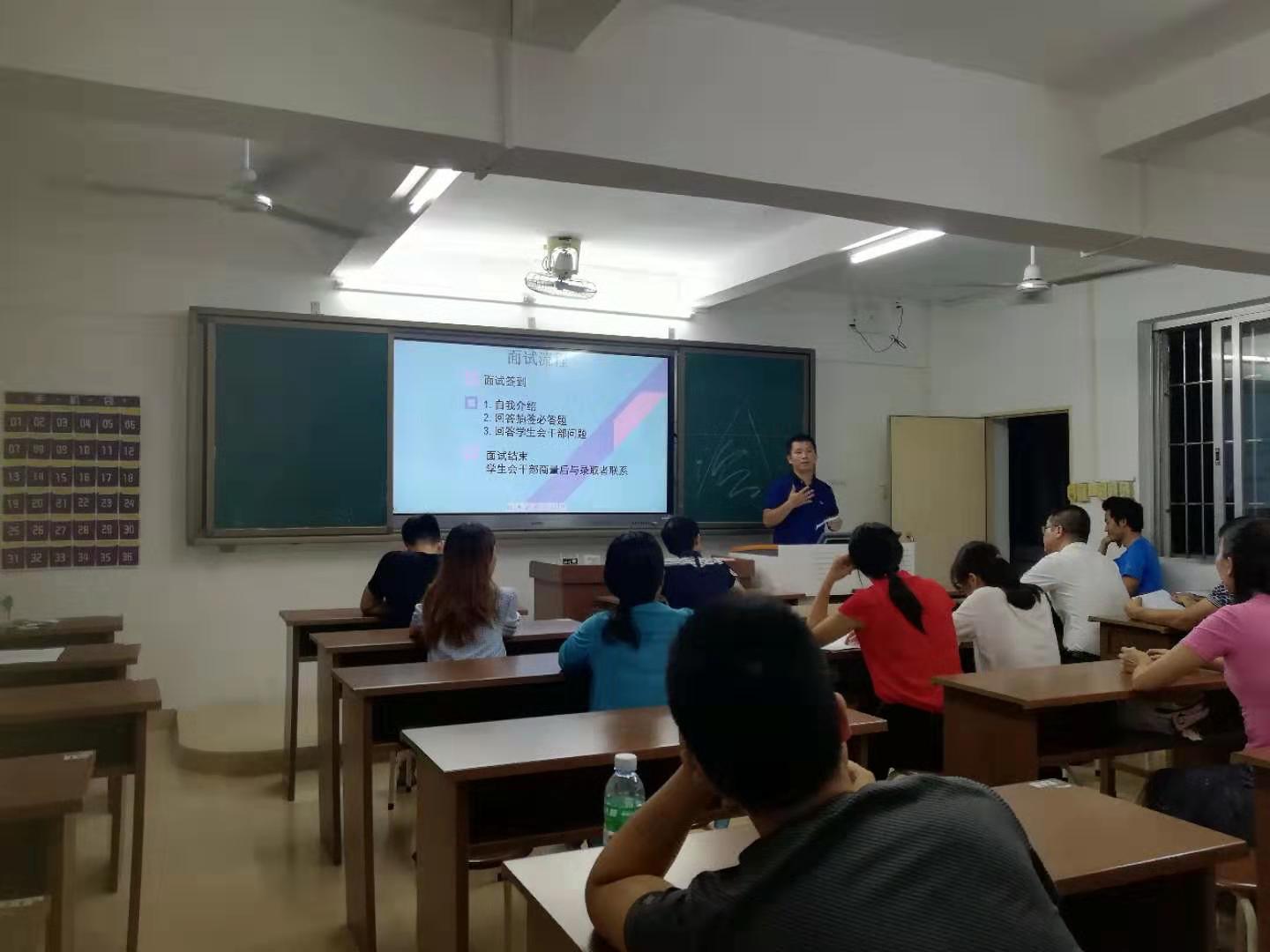 10月27日晚,赤坎校区学生会进行了2019秋季学生会招新面试。本次面试工作由赤坎学生会主席陈荣主持,赤坎校区团总支书记郑妍妍老师及学生会干部代表12人出席会议,共16位申请加入学生会的新生参与了本次面试。