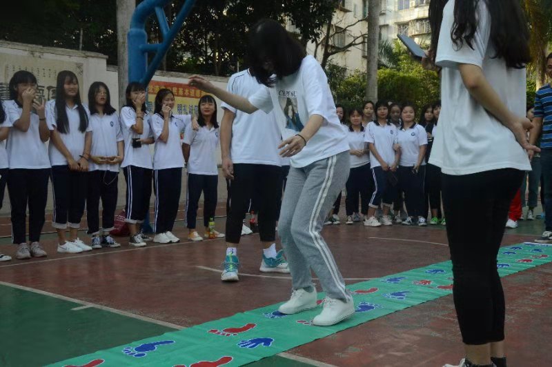 下午3点30分,在校领导的带领下先后开展了激烈的团体健身活动和精彩的游园活动。 九个工会小组分别派出代表参与团体比赛。比赛项目分别是"一圈到底"和"手脚并用单人接力过河",旨在促进大家团结协作的精神。哨声一响,操场上选手们的呐喊声此起彼伏,操场外的教职员工也奋力加油,情绪高涨,整个操场洋溢着热烈非凡,欢声笑语的氛围。