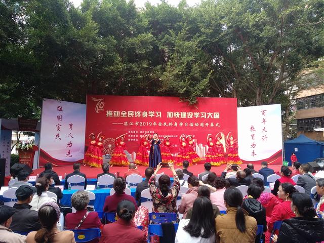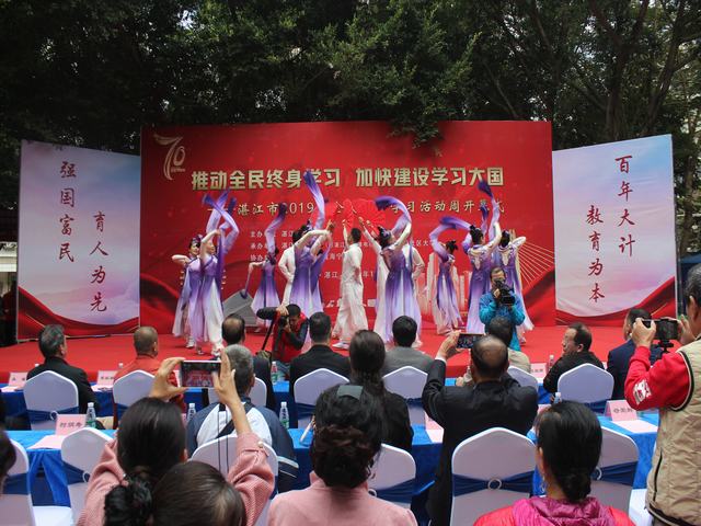 开幕式上,湛江开放大学(湛江社区大学)、湛江市财政职业技术学校带来了异彩纷呈的文艺汇演,让现场嘉宾和市民真正体验到终身学习的乐趣和硕果。湛江市教育局局长李更盛对"终身学习品牌项目"进行了颁奖、宣布启动终身学习活动周,湛江开放大学党委书记、校长许文滔致辞、对"百姓学习之星"进行了颁奖,市教育局副局长夏开晓作了讲话,"终身学习品牌项目"代表秦文燕、"百姓学习之星"代表符爱群分享了学习经验。