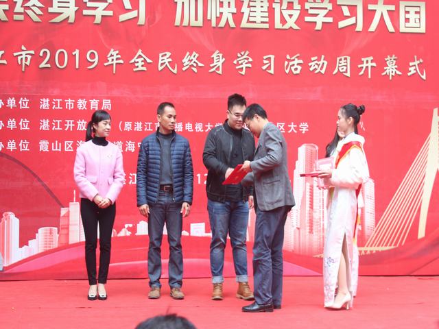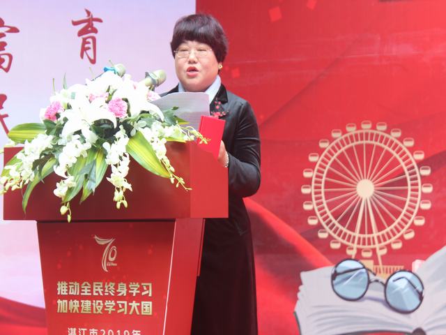湛江市教育局副局长夏开晓在致辞中表示,湛江市高等继续教育事业蓬勃发展,全民终身学习氛围日益浓厚,学习型社会建设步伐加快,特别是依托湛江开放大学为主的社区教育成效显著。希望大家以全民终身学习活动周为契机,牢固树立"终身学习"理念,不断学习、不断充实自我,加快学习型社会的建设。