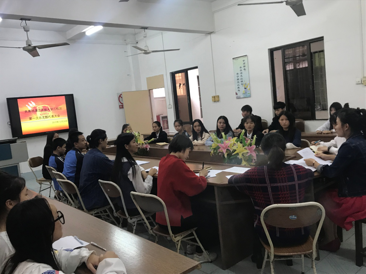 12月24日下午,共青团湛江开放大学主校区第一次总支部代表大会在主校区会议室隆重召开。27名青年师生团代表共聚一堂,共商学校团学组织发展大计。主校区共青团总支部书记肖艳、副书记苏舟怡、李雅婷老师、陈璟妍老师以及各班级支部代表出席了大会。