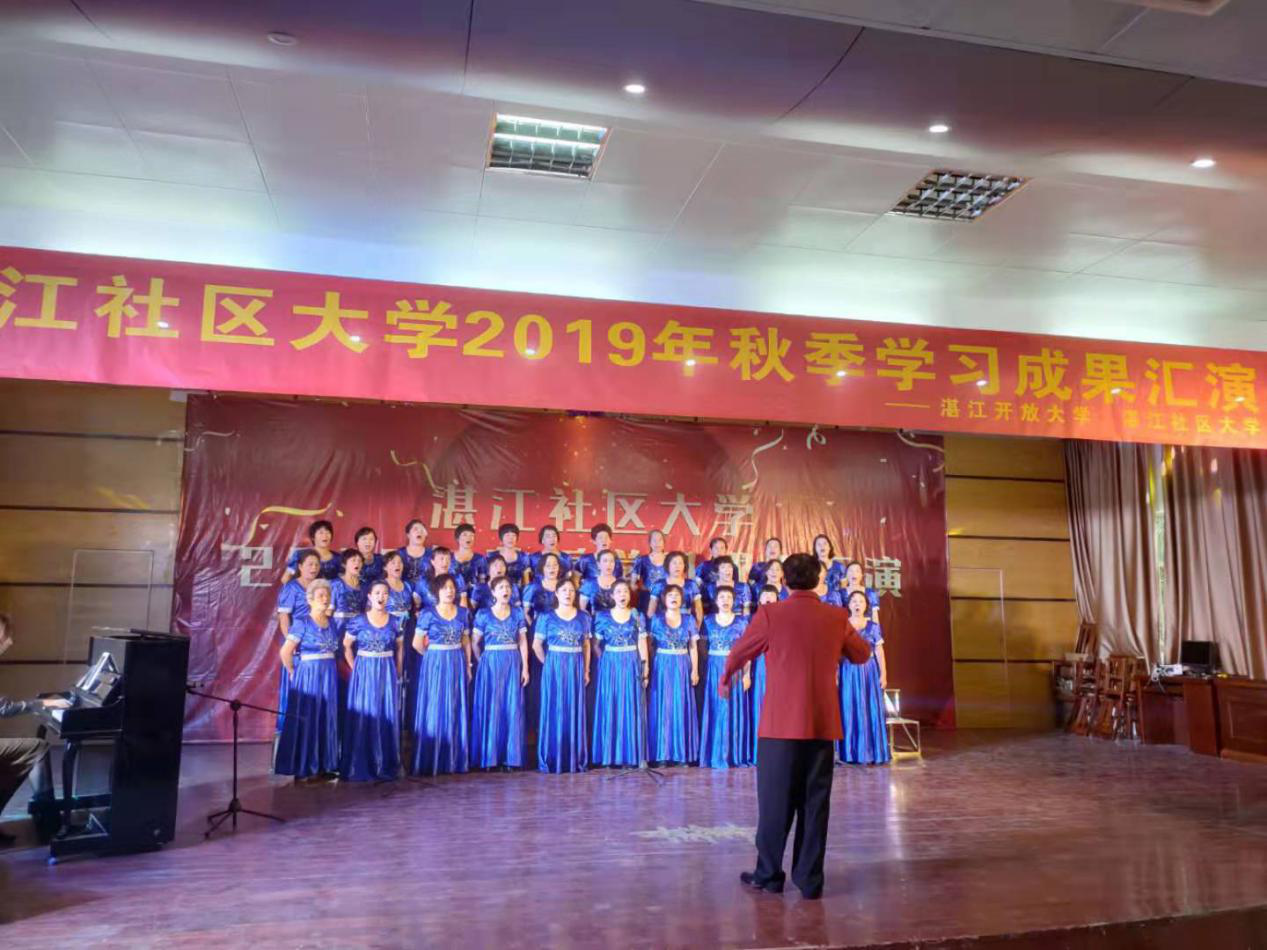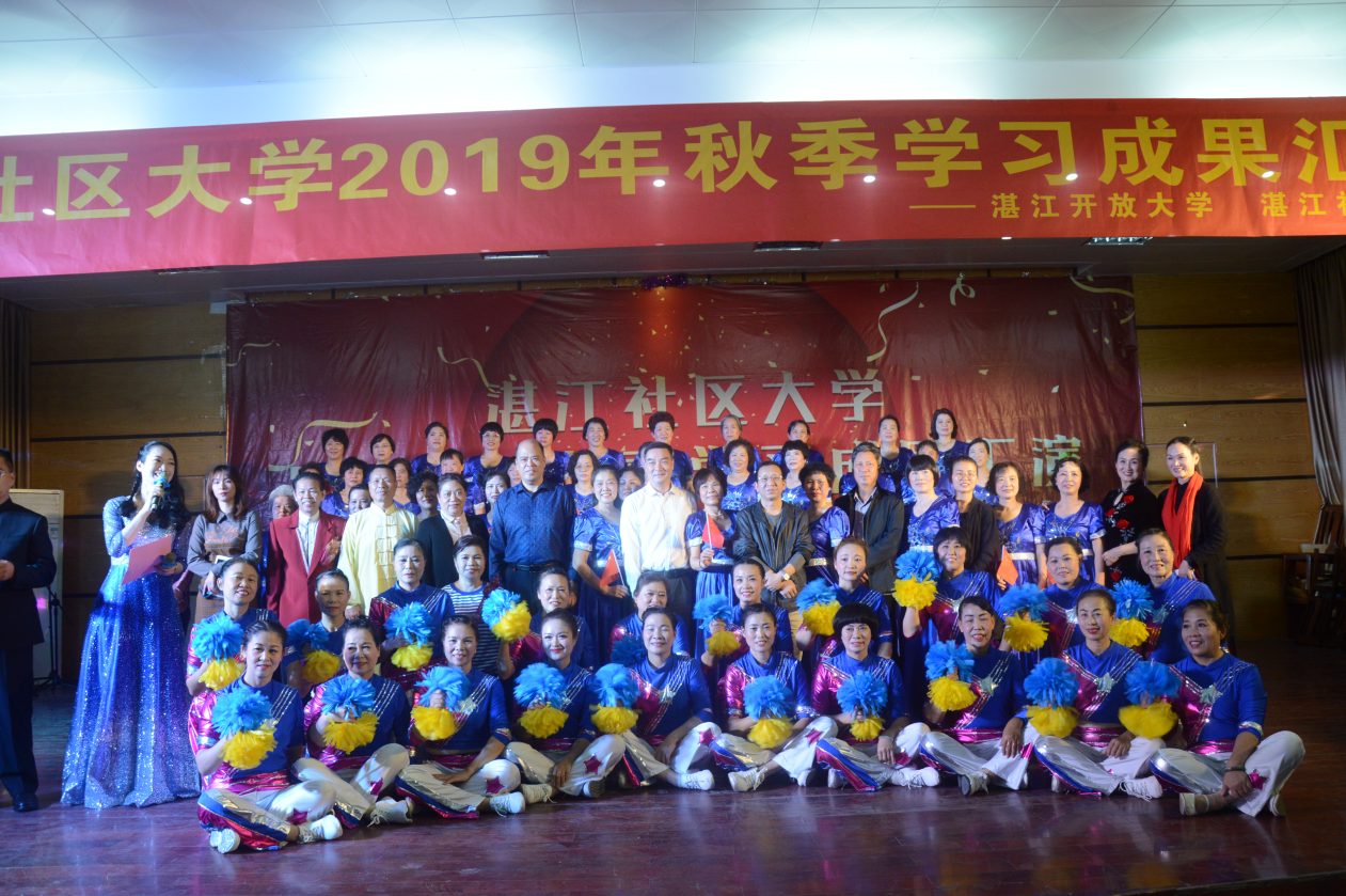 最后,汇演在合唱班悠扬的歌声中走到尾声,师生们与学校领导进行合影留念,湛江社区大学2019年秋季学习成果汇演圆满结束。