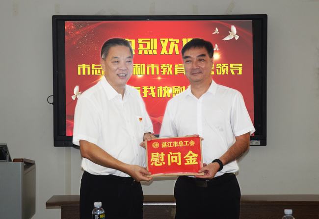 朱华雄主席代表市总工会向我校赠送慰问金,祝教师节快乐!
