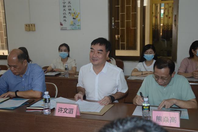 我校党委书记、校长许文滔对朱华雄主席、袁新中副局长一行的到来表示热烈的欢迎和感谢!并作了学校情况介绍和学校教师技能竞赛取得的成绩汇报。