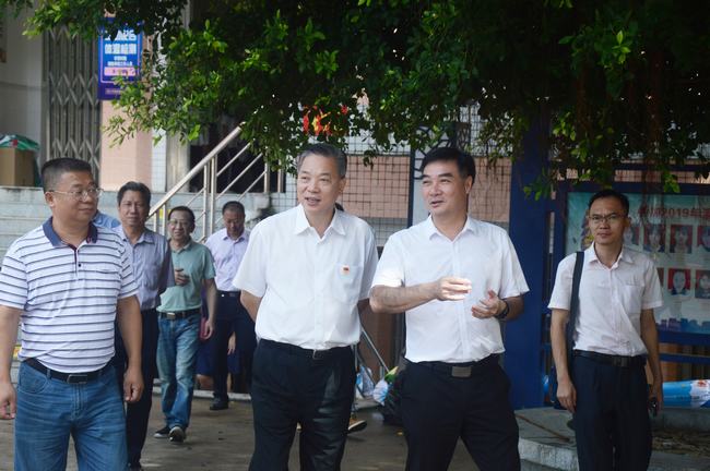 许文滔书记、校长向朱华雄主席一行介绍学校情况