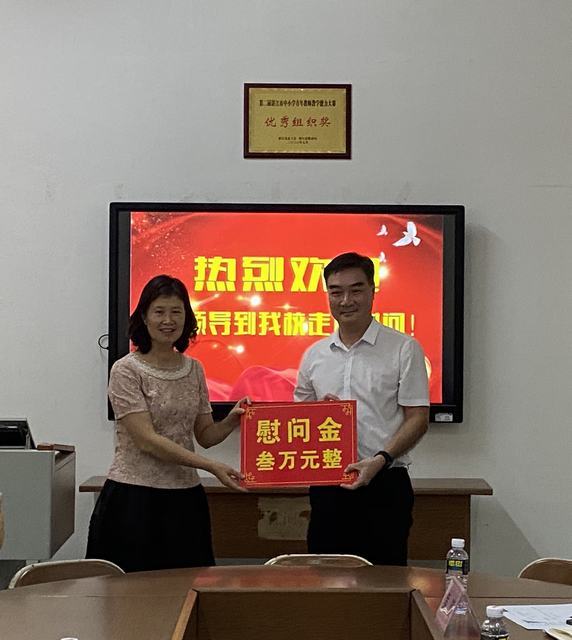 李梅副部长代表市委、市政府向我校赠送慰问金