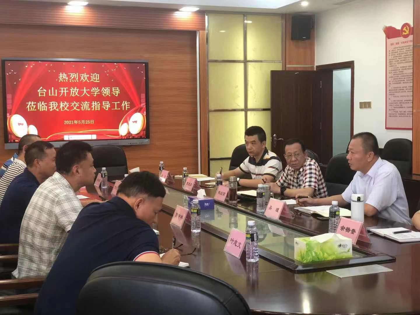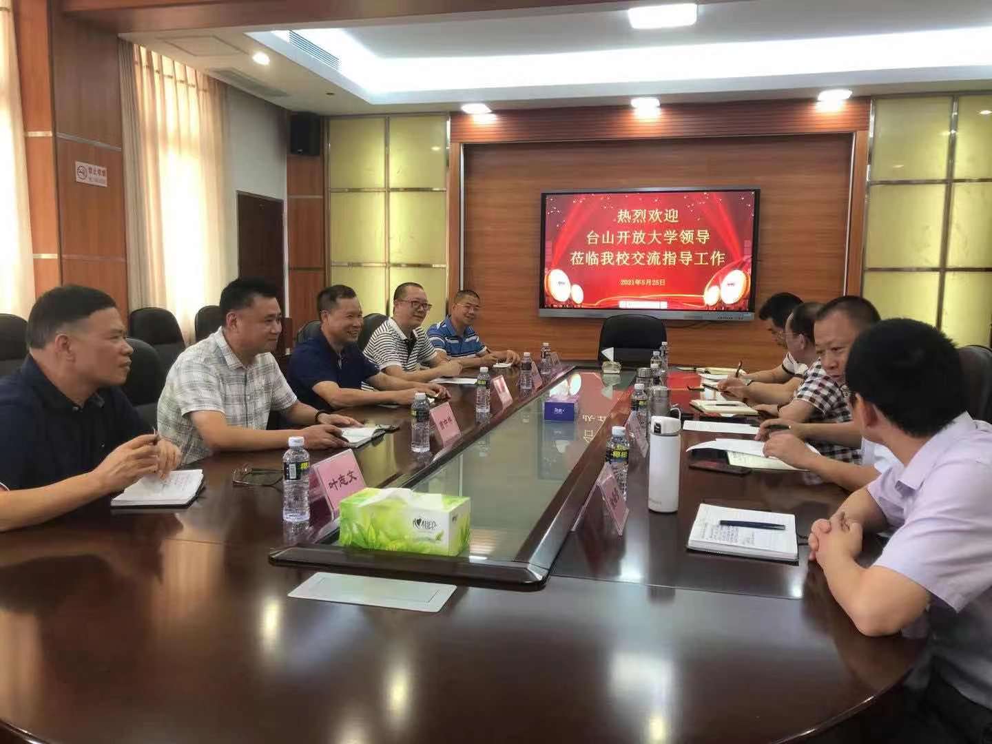 5月25日下午,台山开放大学李炎良书记一行6人到我校进行学习和调研。湛江开放大学党委副书记熊焱高同志、副校长吴瑾同志及相关科室负责人出席本次会议。