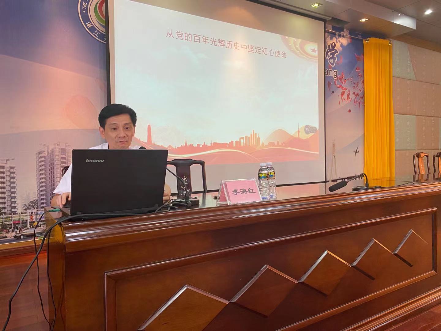 最后,由先进典型李海红同志以《从党的百年光辉历史中坚定初心使命》为题,结合自身的学习和工作体会,为全体党员讲授党课。