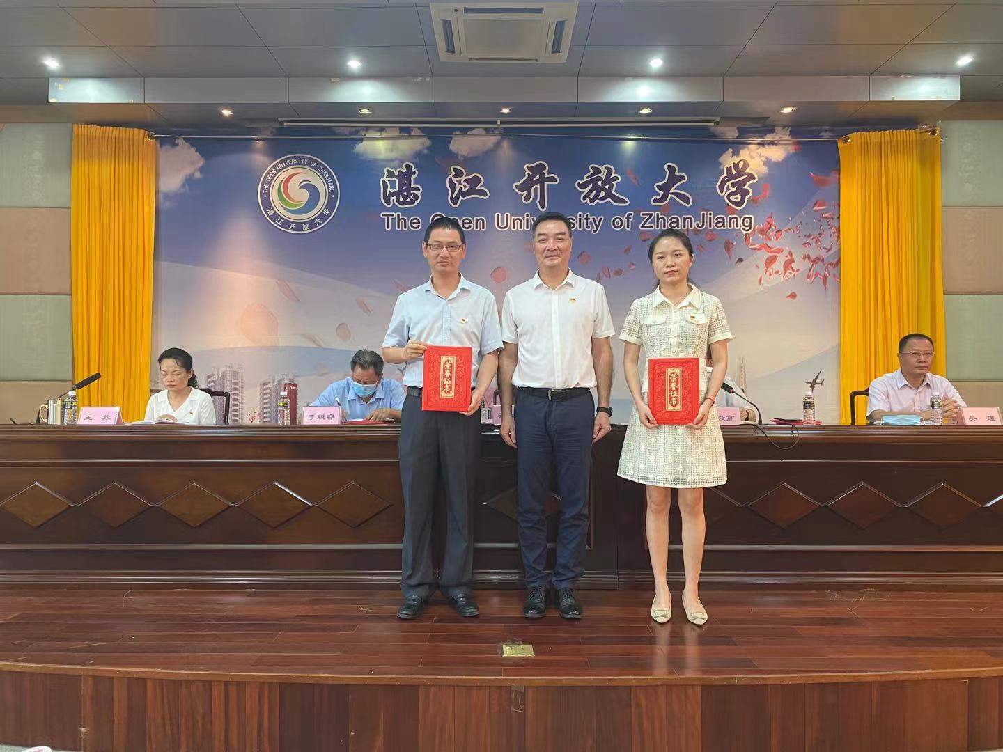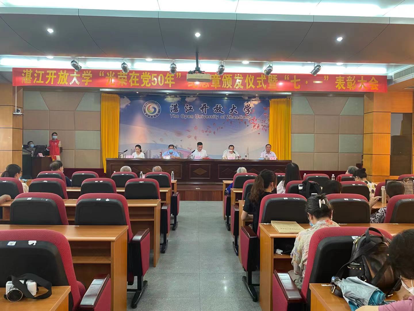 6月29日下午,湛江开放大学在校本部11楼多功能报告厅召开"光荣在党50年"纪念章颁发仪式暨"七•一"表彰大会。会议由党委副书记熊焱高同志主持。