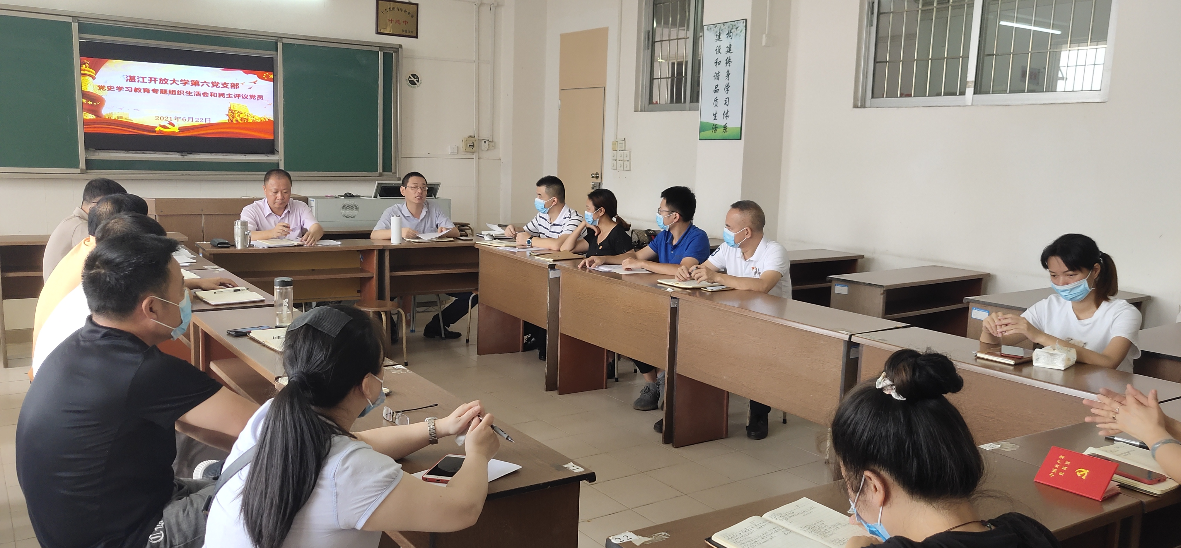 按照组织要求,中共湛江开放大学委员会第六支部党史学习教育专题组织生活会暨民主评议党员大会于2021622日上午9点在湛江开放大学802召开。