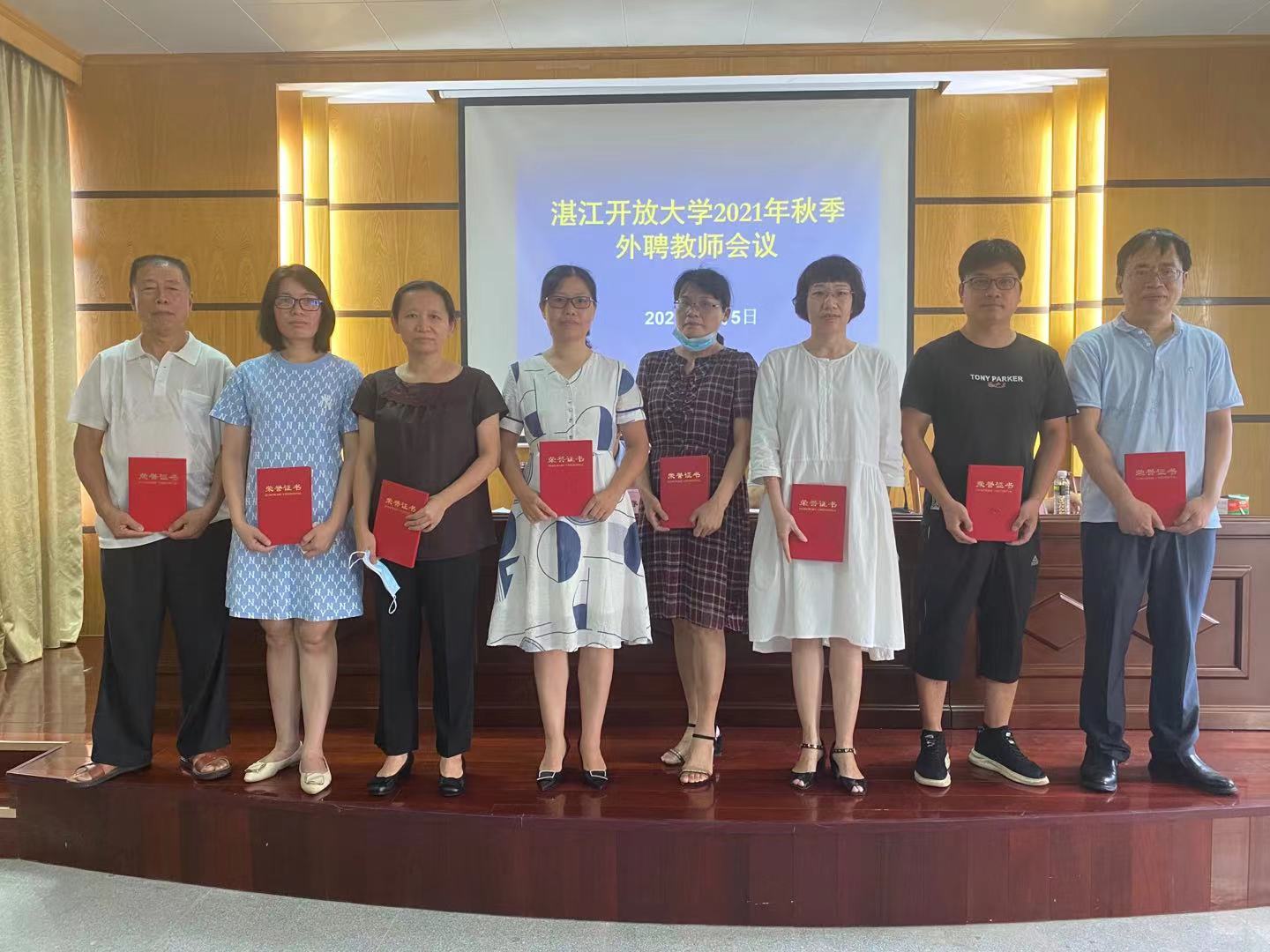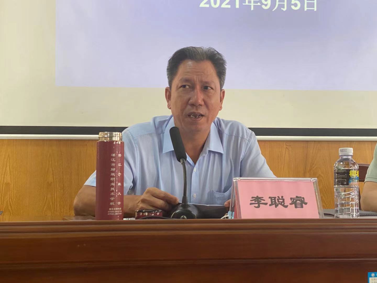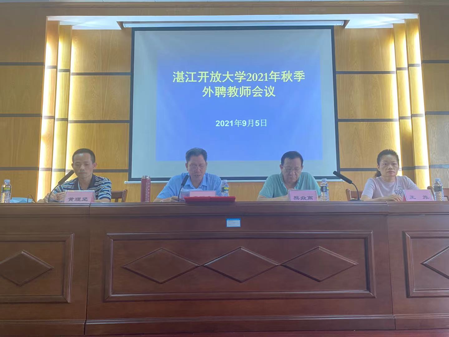 2021年9月5日上午9点,湛江开放大学教学科组织召开2021秋季外聘教师及班主任大会。出席会议的有学校党委副书记熊焱高,副校长李聪睿,副校长王旅,教学科副科长黄理坚,四位教研室主任,各专业外聘教师及相关班主任。会议由黄理坚副科长主持。