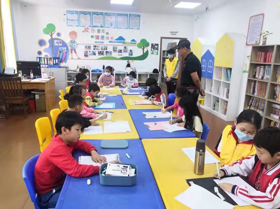 (孩子们在上绘画课中)