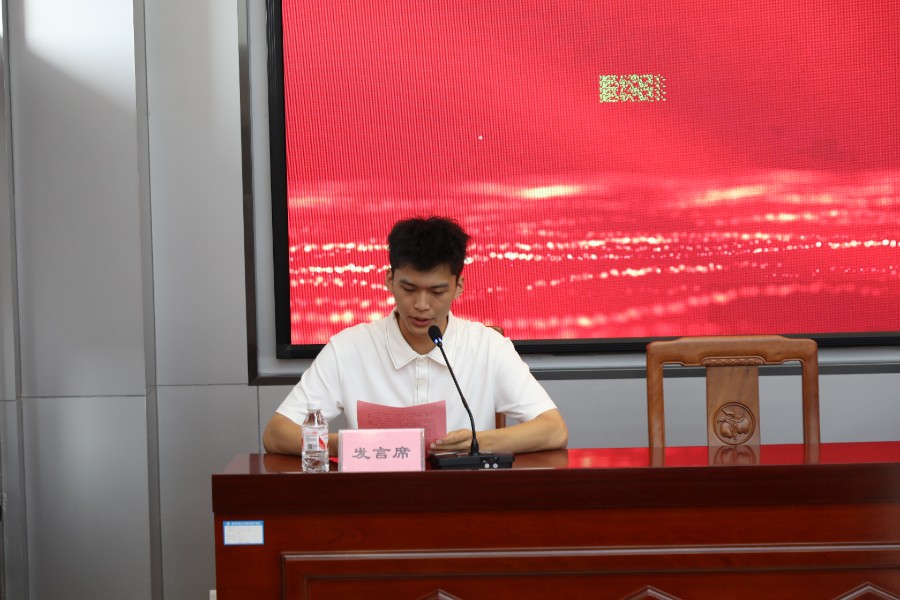 (新进教师董奕宣读《新时代高校教师职业行为十项准则》)