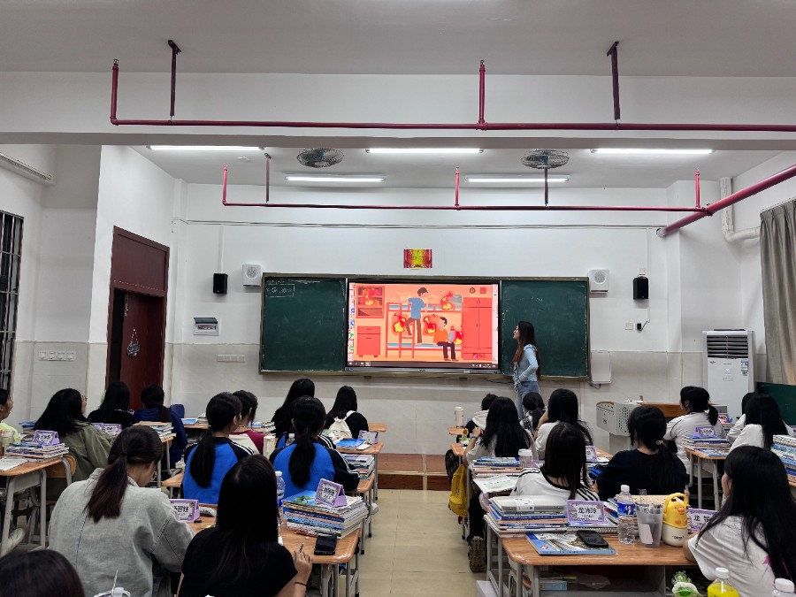 第三步,进行灭火器的使用教学,邀请学生上台实操,在相关人员指导下操作灭火器,从实践中掌握消防技能。