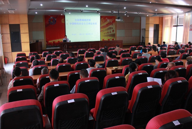 下午,根据全年政治理论学习计划安排,我校在11楼学术报告厅由学校党委书记、校长李连红同志作"全面准确地把握中国特色社会主义理论体系"的专题报告。副书记饶腊年同志主持会议。李校长从中国特色社会主义理论体系是党的重大理论创新、形成与发展、基本内涵及历史地位等方面进行了系统阐述。李校长介绍说,中国特色社会主义理论体系是道路、理论体系和旗帜的统一,由邓小平理论、"三个代表"重要思想以及科学发展观为主要组成部分,提出并回答了什么是社会主义、怎样建设社会主义,建设什么样的党、怎样建设党以及实现什么样的发展、怎样发展等基本问题。饶腊年同志在总结时指出,全校党员要加强理论学习,用理论武装头脑,指导实践,为电大教育事业的开展保驾护航。
