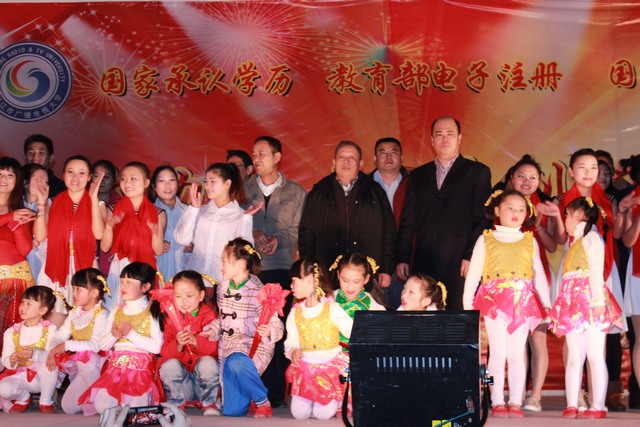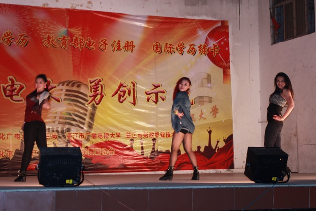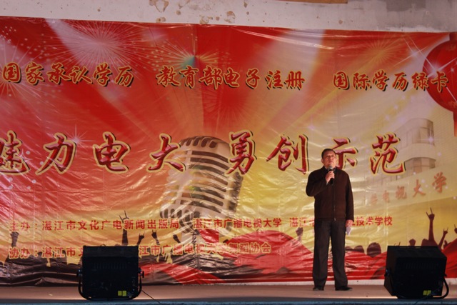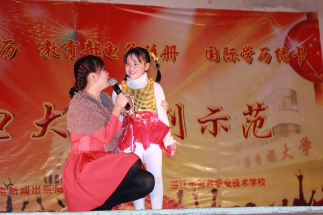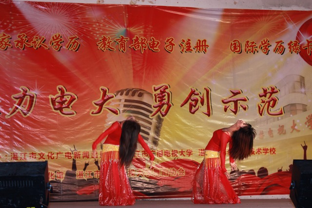 1月10日晚,湛江赤坎区开心广场彩灯闪耀,笑语飞扬,由湛江市文化广电新闻出版局、湛江市广播电视大学、湛江市财政职业技术学校主办,湛江市文化馆协办的歌舞晚会在这里隆重举行,庆祝我校被评为"2013年度广东省示范性基层电大"。学校师生与市民数百人一起观看了演出,一起分享蛇年收获的喜悦,感受春的气息。