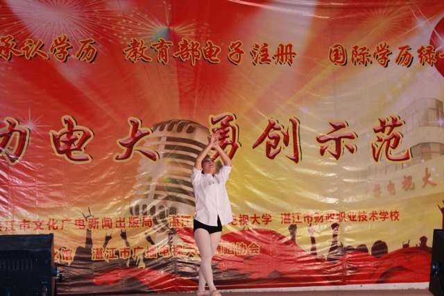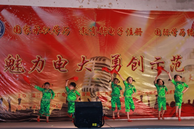 少儿舞蹈《亲亲茉莉花》拉开了晚会的序幕,小演员欢快活泼的表演赢得了观众热烈的掌声。电大同学表演的爵士舞、肚皮舞充满着青春活力和激情,歌伴舞《红旗飘飘》、《只要你们和我一起唱》让观众感受到盛世的欢乐和祥和,陈雅同学独舞《我好想你》曼妙的舞姿的赢得了阵阵喝彩,2012年湛江电大"十佳校园歌手赛"冠军何佩聪的《只要你们和我一起唱》、2013年冠军许仲权同学的《海阔天空》把晚会带向了高潮。师生们的精彩表演深深吸引了观众,广场晚会把电大丰富多彩的校园文化展现给广大市民,让社会感受到电大学子的蓬勃朝气和积极健康向上的精神风貌。