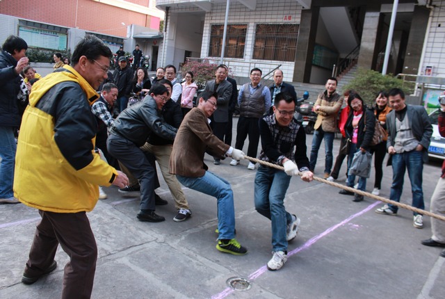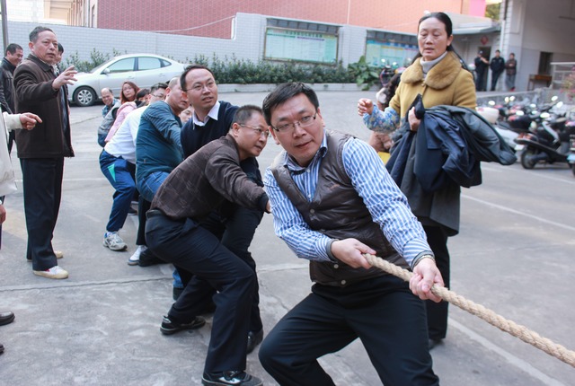 在新春佳节即将到来之际,我校工会在校本部操场举办了教职工男女混合拔河比赛。本次比赛以四个党支部为参赛主体,每个支部及相关科室各选出12名队员参赛。在啦啦队震耳的助威呐喊声中,队员们鼓足了劲,涨红了脸,抓紧了绳,全力以赴,努力争夺,现场气氛十分热烈。学校党委书记、校长李连红等校领导上场参加了比赛。