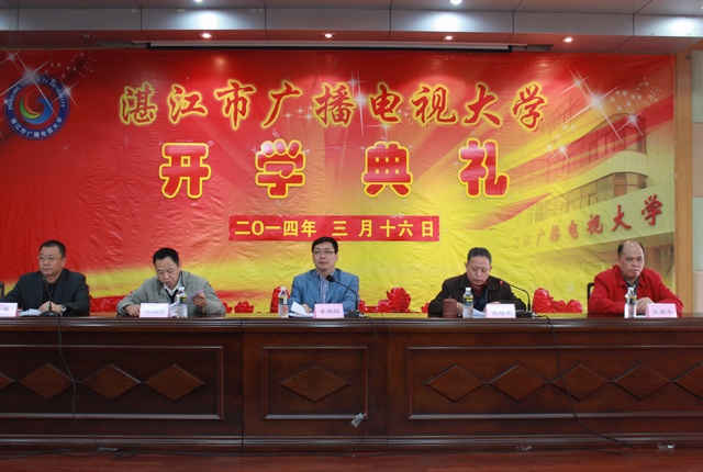 学校党委书记、校长李连红在致词中对新同学的到来表示热烈欢迎,祝贺大家正式成为教育部直属高校--国家开放大学(中央电大)的大学生。他介绍说,湛江电大2014年春季开放教育录取873人,连续三年保持了较大招生录取规模,今年春季是国家开放大学成立后首次在湛江地区招生,录取人数最多的专业是行政管理、会计学、工商管理和土木工程等。
