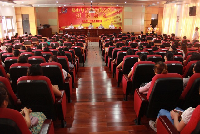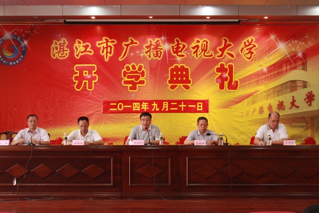学校党委书记、校长李连红在致词中对新同学的到来表示热烈欢迎,祝贺大家正式成为教育部直属高校--国家开放大学(原中央电大)的大学生。他介绍说,湛江电大2014年秋季开放教育录取1152人,录取人数最多的专业是行政管理、会计学、学前教育、工商管理和土木工程等。李校长对新生们的学习提出了具体的要求,勉励大家学好本领,成为"下得去、用得上、信得过"的实用人才,服务湛江地方经济社会发展。