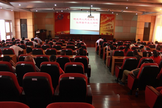 根据我校全年政治理论学习计划安排,结合党的群众路线教育实践活动,10月21日,学校在11楼学术报告厅召开专题学习会,校领导班子及全体教职工参加了学习。学校党委副书记饶腊年同志作了题为"树立为人民服务思想,弘扬集体主义精神"的专题报告,要求全校干部职工紧密结合工作实际,牢固树立全心全意为人民服务宗旨思想,坚决革除"四风"同时加强集体意识、大局意识、责任意识,改变工作作风,进一步提升电大教育的服务水平,努力开创湛江电大教育事业发展新局面。