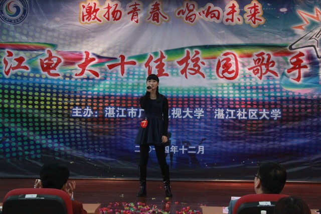 本次决赛共有20名选手参加, 经过激烈角逐,13秋会计班许仲权演唱的《浮夸》获得一等奖,14秋工商管理班黎俊凯《Hello》、13秋工商管理班陈政宇《对不起我爱你》、14秋商务英语班陈洁莹《没那么简单》获得二等奖,14秋英语专科班黄文挺、13秋金融本科班卓志缤、14春工商管理班庞伟文、14春行政管理班黄玲玲、13秋学前教育班谢丽华、13春行政管理班颜晓钰、陈文强获得三等奖。李连红校长等领导分别为获奖选手颁奖。比赛活动丰富学生、教职工的文化生活,推动校园文化建设更上新台阶。