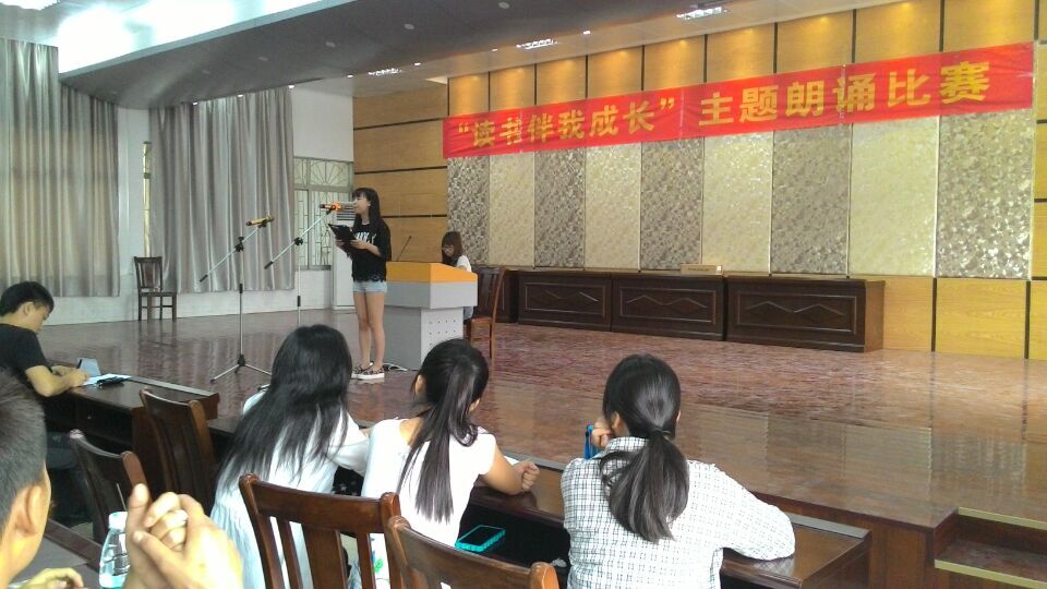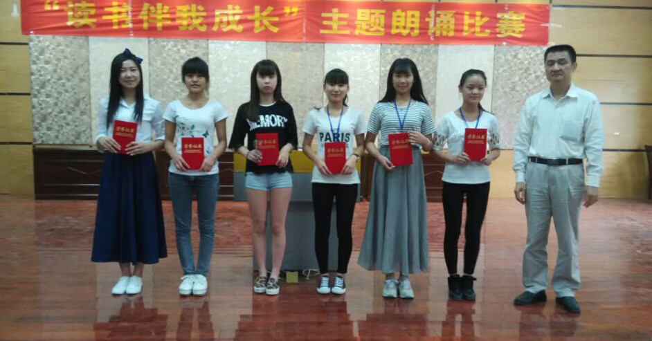 比赛中,参赛选手们紧紧围绕"读书伴我成长"这一主题进行朗诵,从各个角度充分展现了当代青少年热爱读书、热爱生活的高尚情怀。选手们全身心的投入到演讲中,铿锵有力、情绪激昂,饱含深情、娓娓道来。比赛会场气氛异常热烈,掌声雷动。经过激烈角逐,于6名评委进行评分,评选出了一等奖(1名)、二等奖(2名)、三等奖(3名)。获奖名如下:一等奖孙诗敏,二等奖龙冰茹、张南荣,三等奖梁小敏、文艳、李诗琦,并为获奖选手颁发了荣誉证书。
