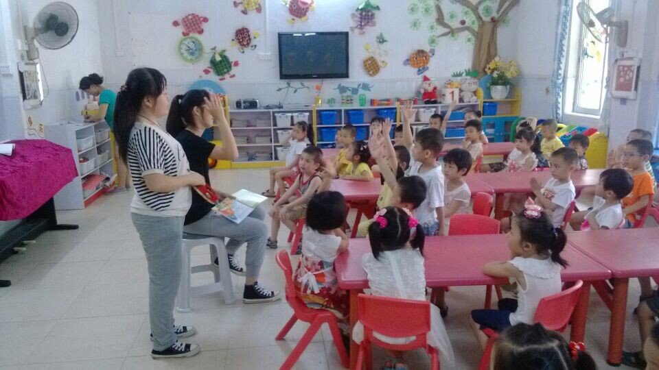 见习生在给小朋友们上课