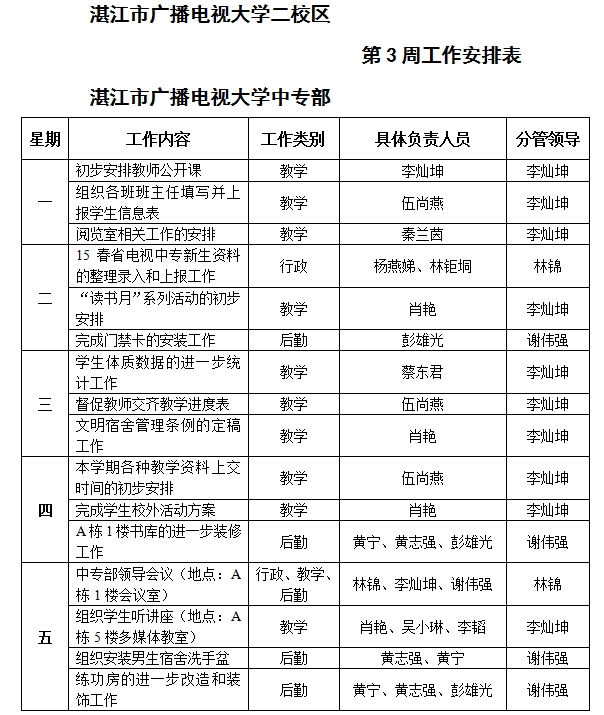 - 主校区(湛江市财政职业技术学校)2013-2014年度第二学期课程表1 2014.3.5(计算机考证结束前执行,约至3月底止)