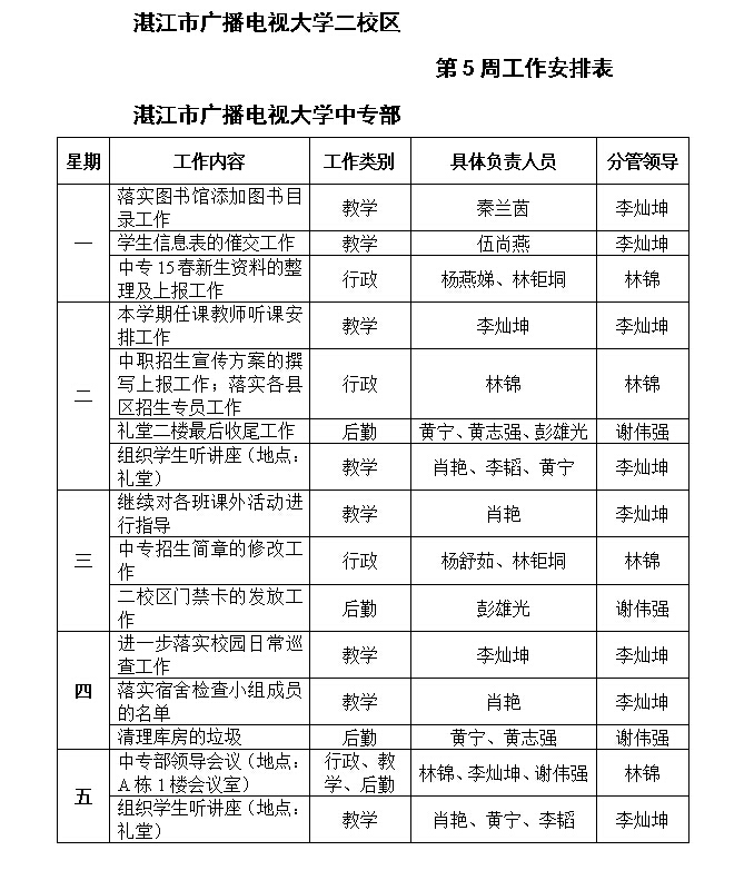 - 主校区(湛江市财政职业技术学校)2013-2014年度第二学期课程表1 2014.3.5(计算机考证结束前执行,约至3月底止)
