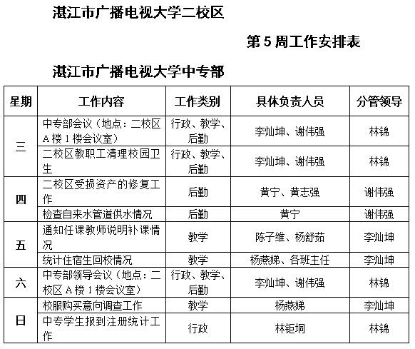 主校区和中专部第5周工作安排