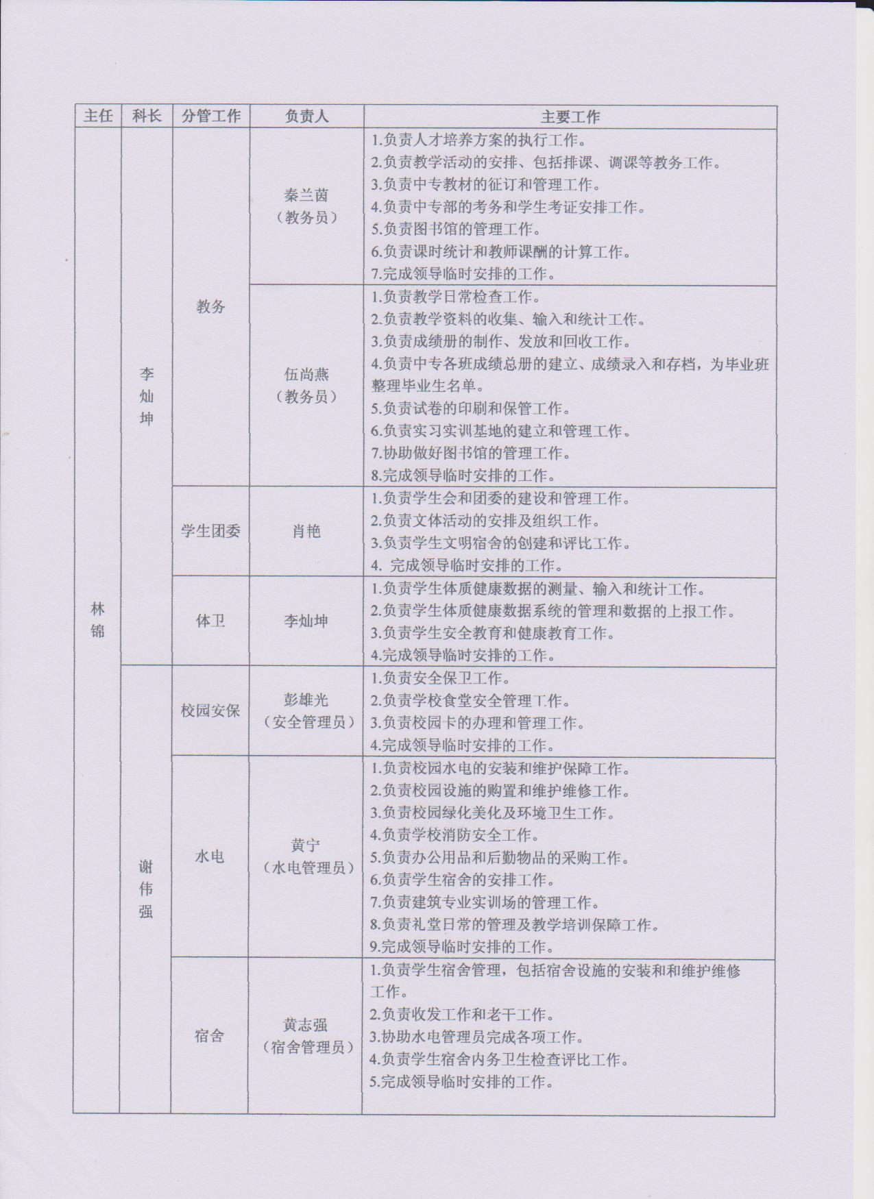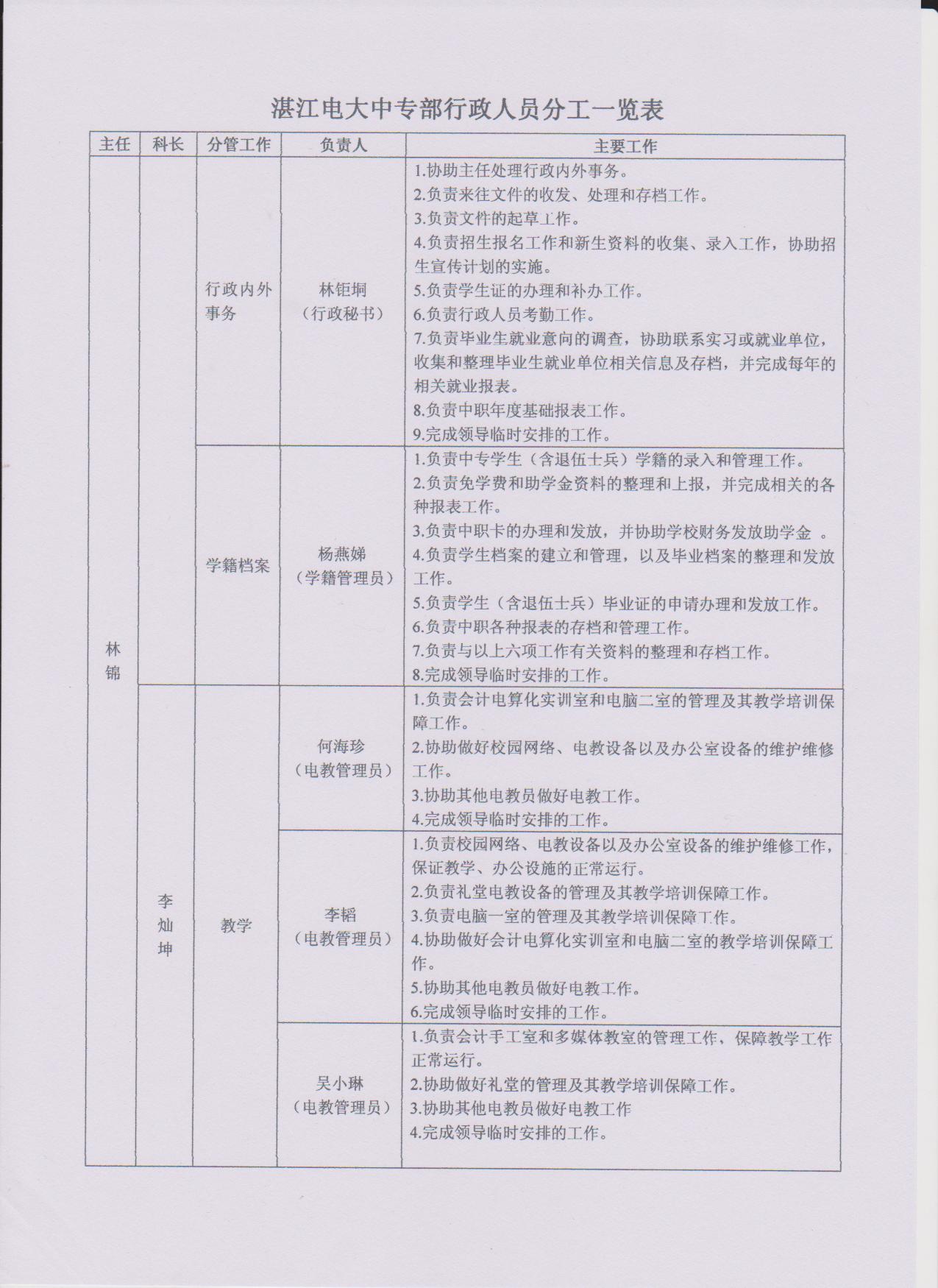 湛江电大中专部行政人员分工一览表
