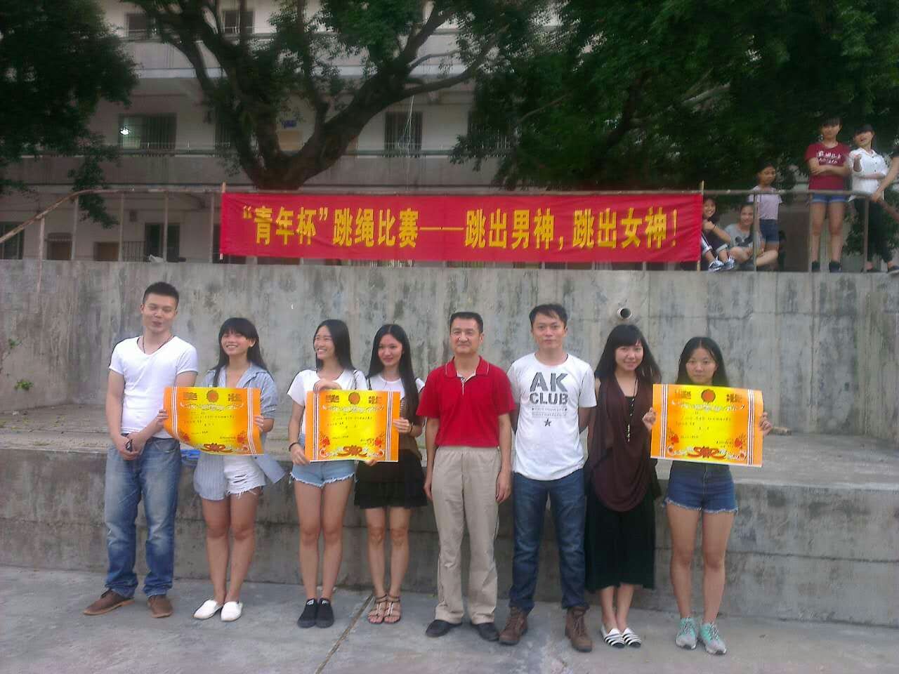 为了给同学们提供放松解压的休闲机会、展现班级团队合作能力和人际交往的平台。2015年11月18日下午4:40分,主校区举办了主题为"跳出男神,跳出女神"的"青年杯"跳绳比赛活动。