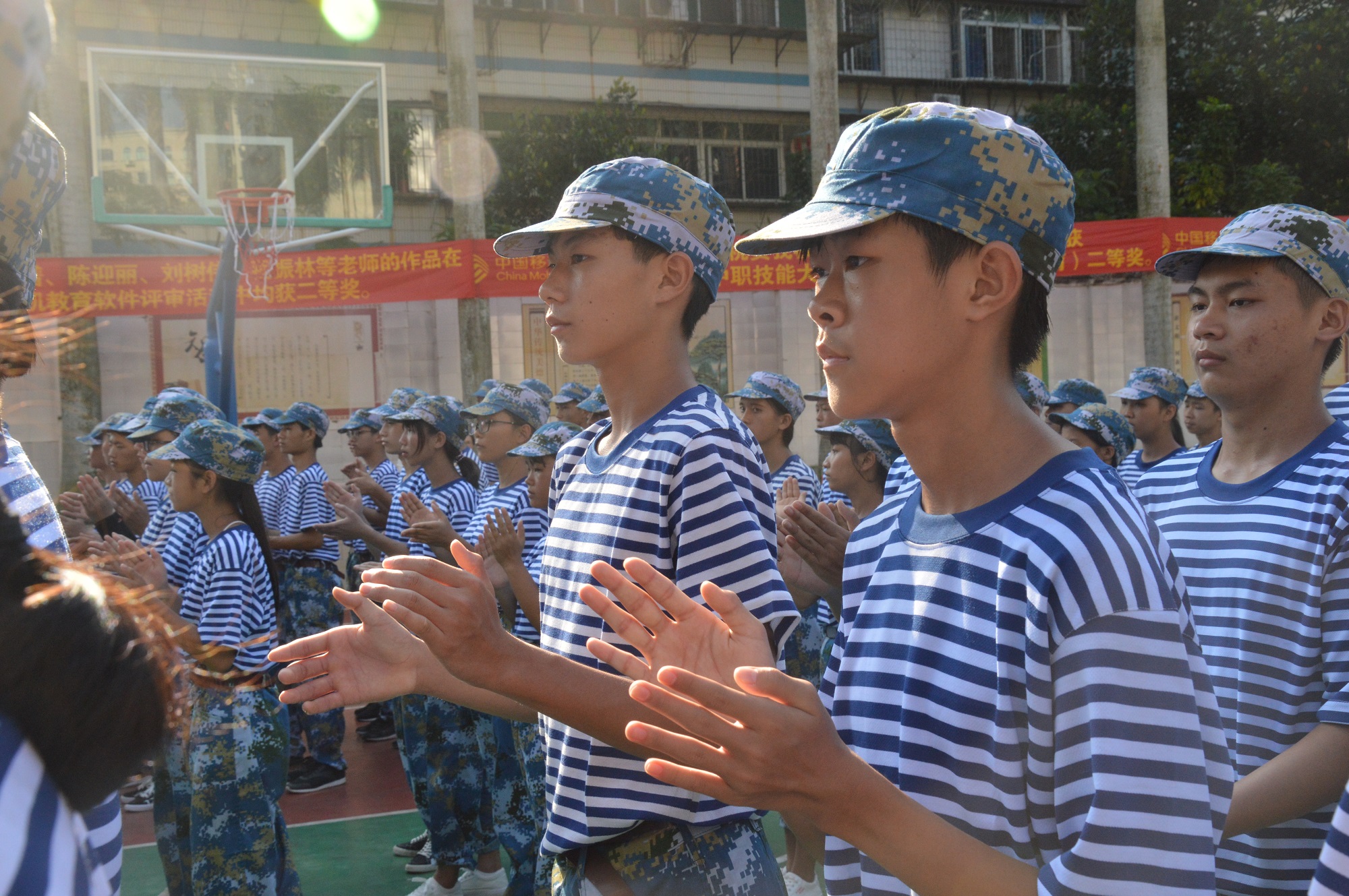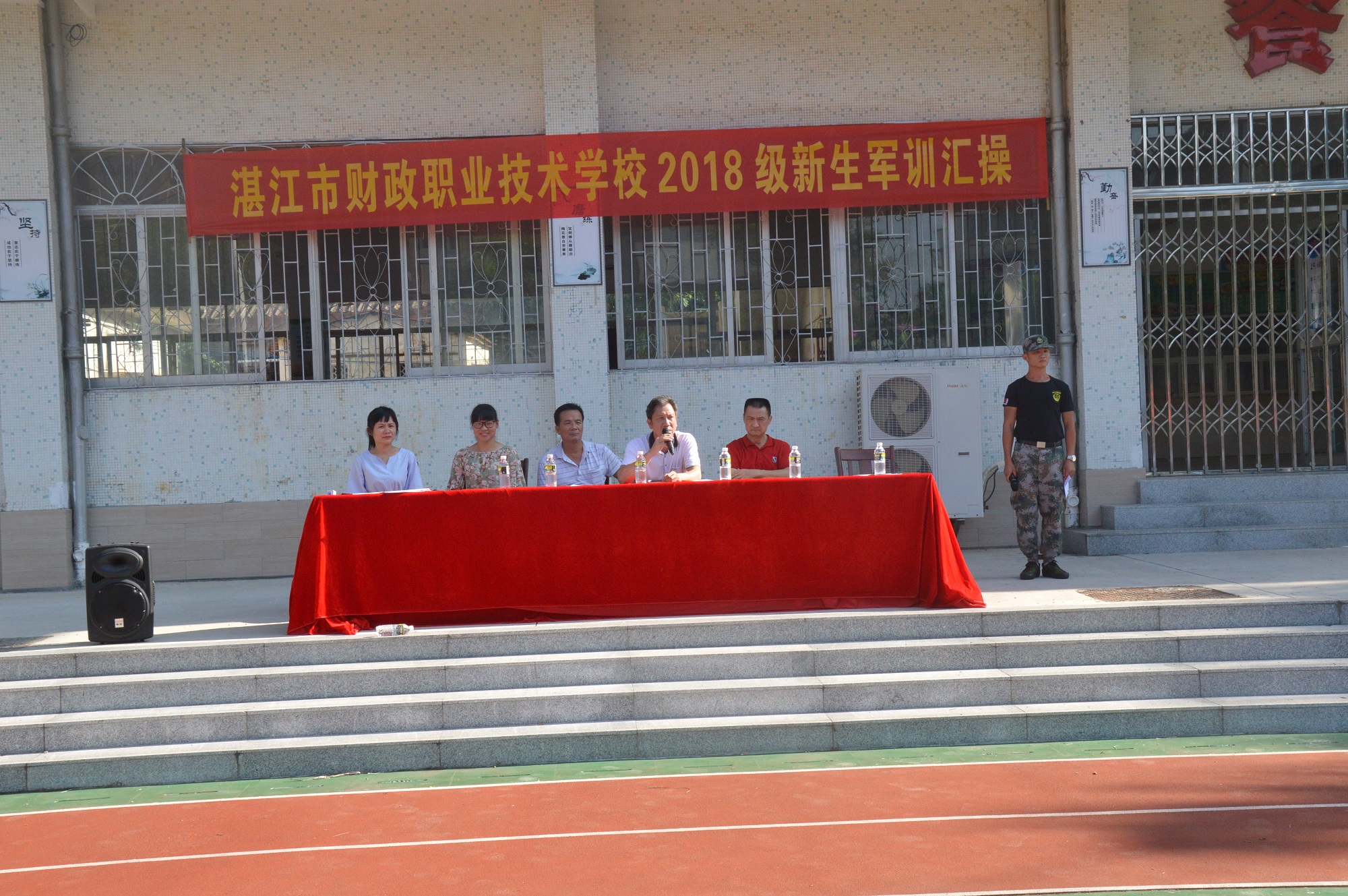 2018914日下午3:302018级新生军训会操在湛江开放大学主校区(湛江市财政职业技术学校)隆重举行。学校领导李聪睿副校长,中专部主任林锦、副主任谢伟强,杨燕娣老师、肖艳老师以及各新生班班主任和2018级全体新生出席了本次大会。